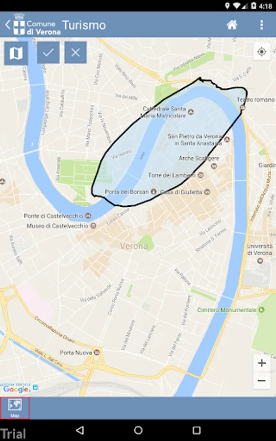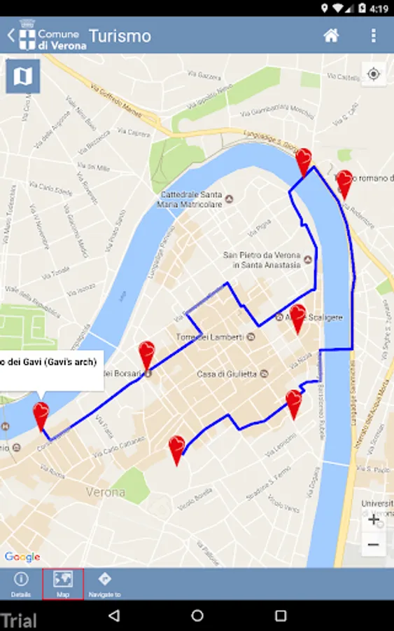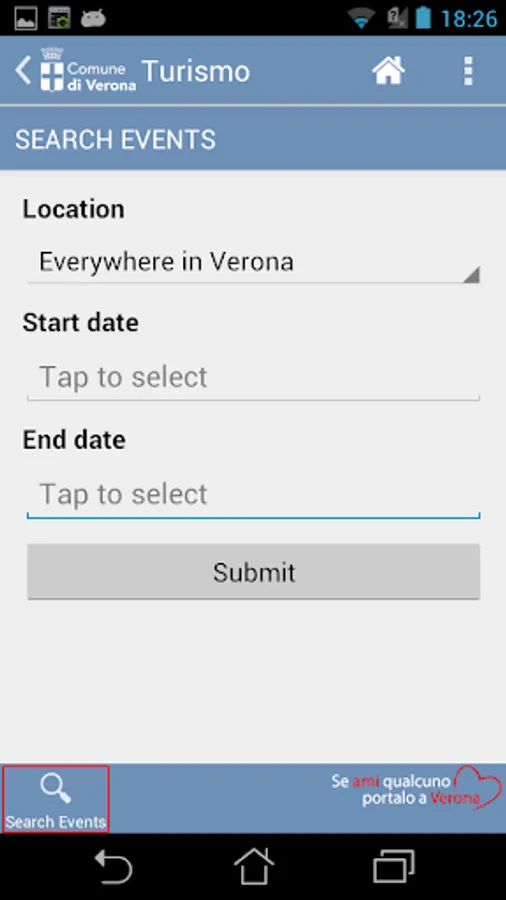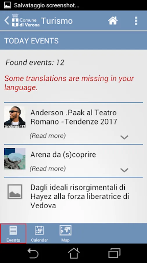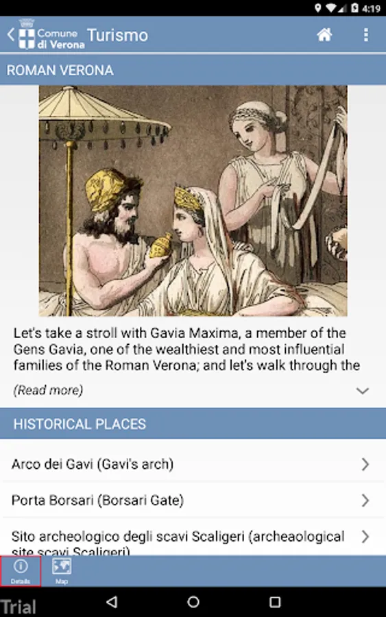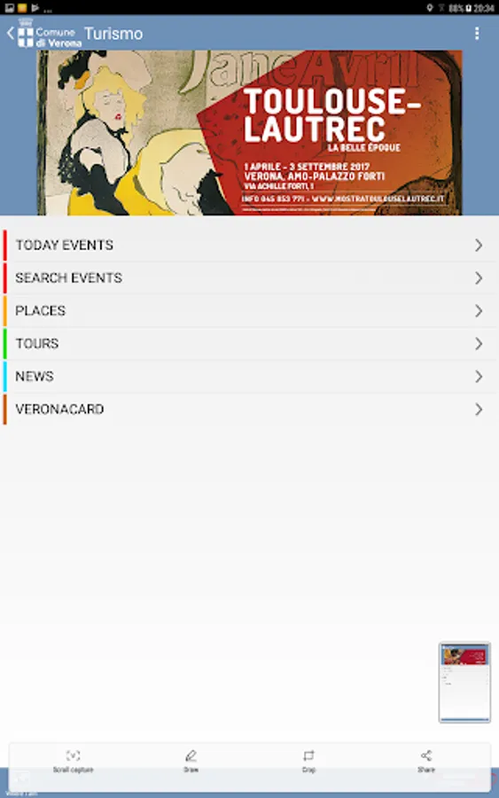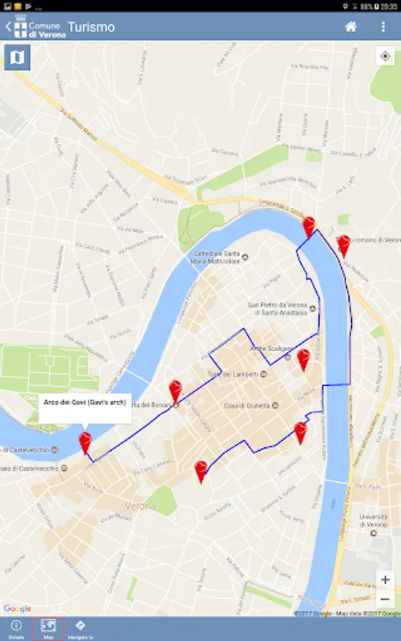 All the information are geolocalized. The APP follows you during your visit and helps you to find out all the events next to you.