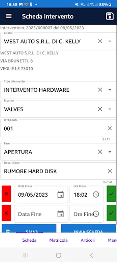 The app allows you to speed up and monitor the technical interventions carried out by mobile resources, giving them the possibility of having an always updated picture of the interventions made on each customer's plants and machinery.