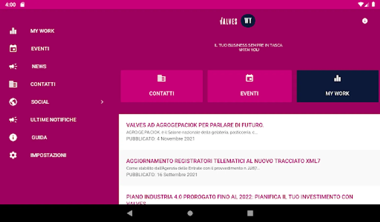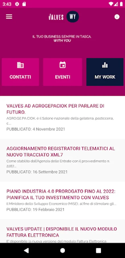 WY is the new, revolutionary VALVES institutional App dedicated to the most demanding customers, that is, to those who want to have control of their business wherever they are, in the palm of their hand.