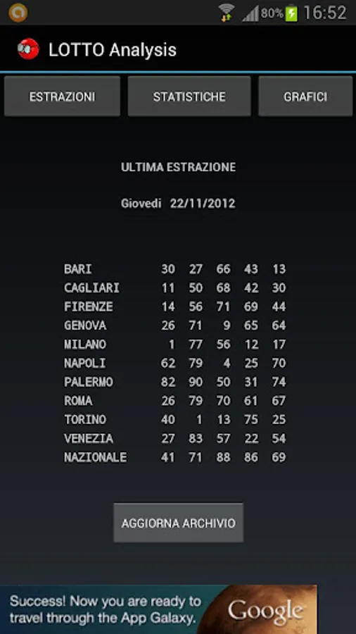 ATTENTION: the extractions are taken from the teletext site and several times they have wrong numbers or dates. I recommend checking the draws on the Lottomatica official website. If you find wrong extracts in my app, try removing and reinstalling it so that it will re-download the complete archive of all extracts.