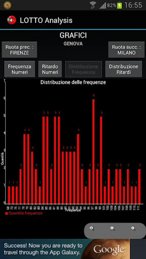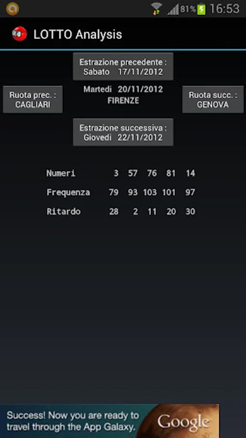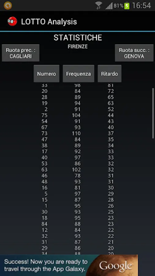 The table of the most frequent and late numbers is shown, with the two buttons at the top to go to the previous or next wheel.