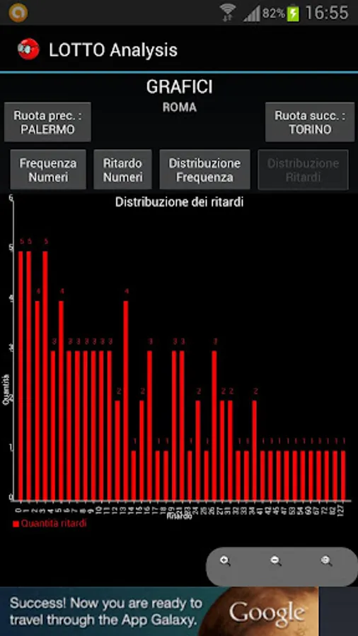 LOTTO Analysis allows you to easily view all the lottery drawings from 2001 to today showing the most frequent and late numbers of each wheel, in sortable tables or with graphs.