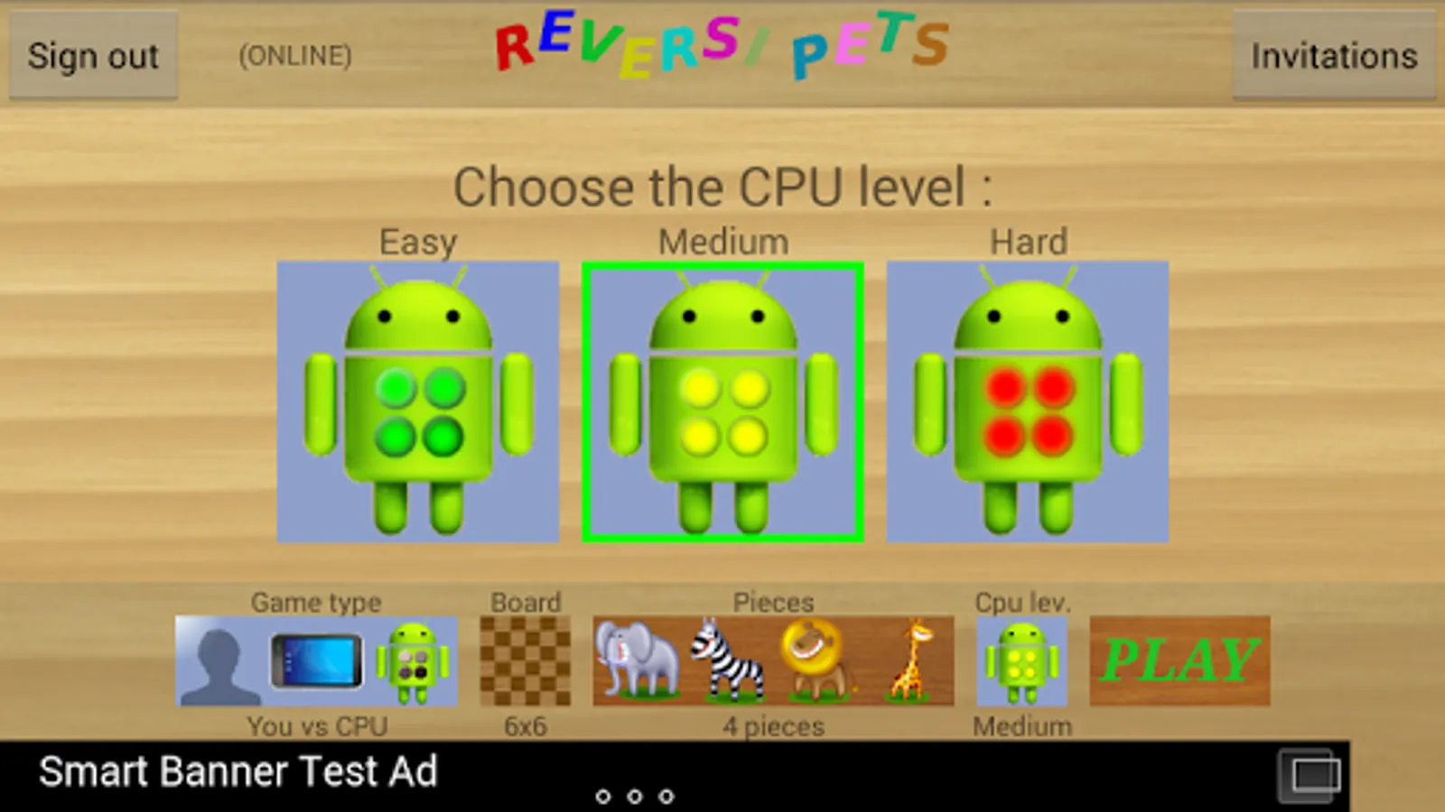 You vs CPU : to play with the cpu, 3 levels are available (easy, medium, hard).