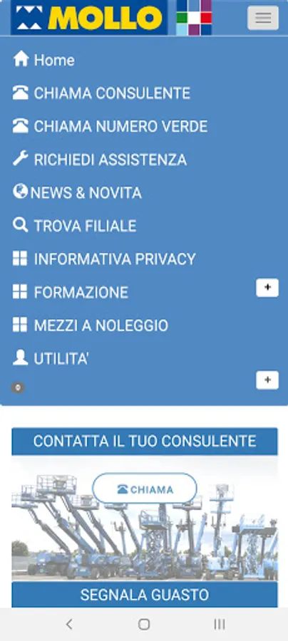 Mollo Noleggio is the Mollo Group company specialized in the rental in Italy and abroad of machines, equipment and professional products for construction, industry and agriculture: aerial platforms for work at height, lifting equipment, cranes for construction, earthmoving, trucks, construction machinery and equipment, portable toilets.
