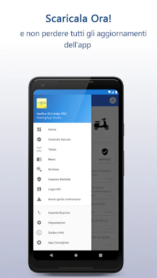 In 2019 in Italy it is estimated that about 4 million of vehicles in circulation are without regular insurance coverage. Many are the crafty ones, but even more are the people who unknowingly circulate on the road with a false insurance coverage because it is stipulated on scam websites. IVASS (Insurance Supervisory Institute), in addition to constantly publishing the list of companies authorized to operate in Italy, finds and reports scam websites that advertise fake RCA online. More than 300 scam sites were reported in 2019 alone! In the app you can easily consult these lists and receive notifications of the latest fraudulent sites identified and reported to the authorities.