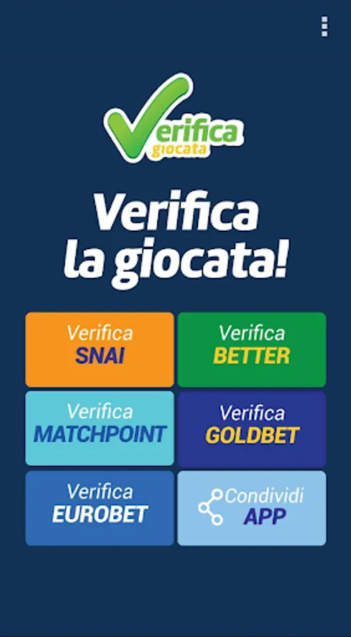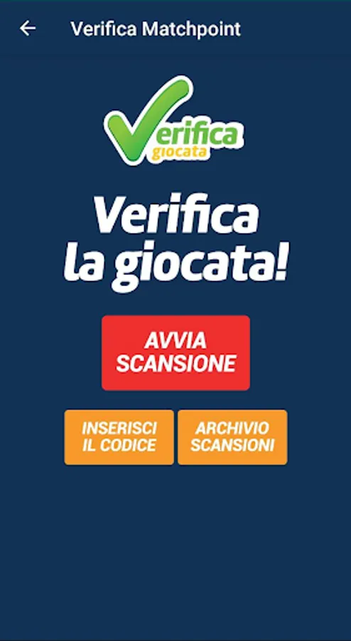 Using the app is very simple, you must first select the type of ticket (Snai, Better, Matchpoint, Goldbet, eurobet) and then press the "START SCAN" button to then scan the qrcode or barcode on the ticket.