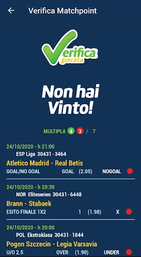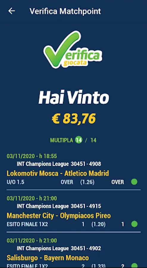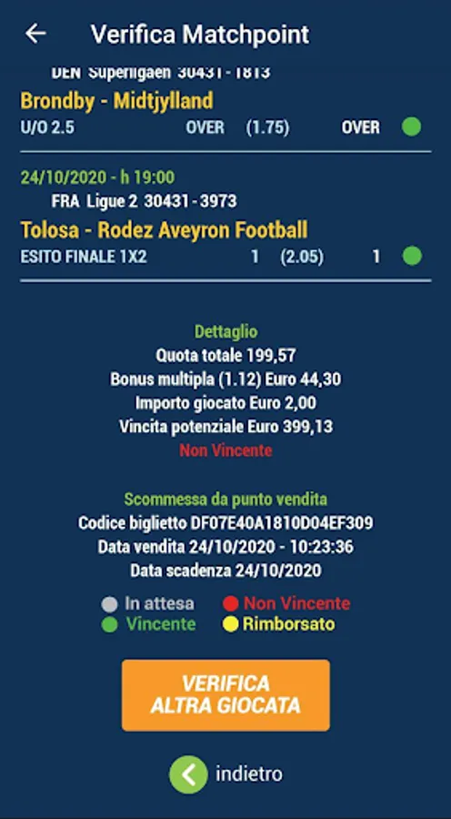 After verifying the ticket, the app memorizes the play made so as to be able to verify it even at a later time even if you don't have the ticket with you!