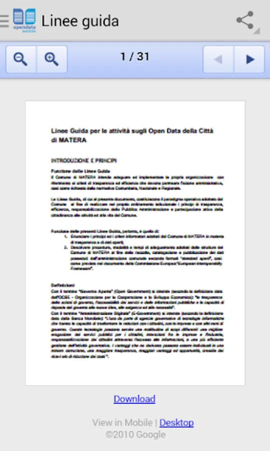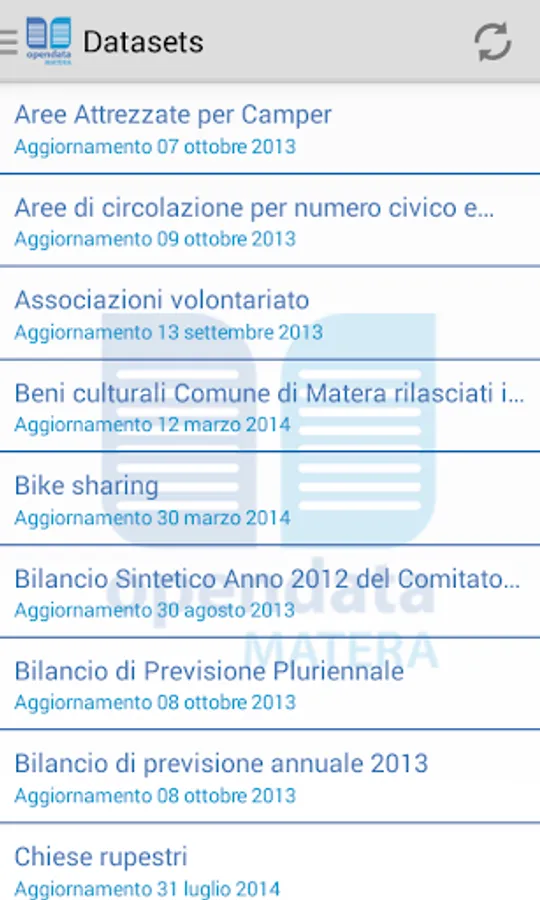 The app will have a list of some datasets, which will open maps, OpenStreetMap layers, grafic, and anything else that will be implemented as OpenData portal of the City http://dati.comune.matera.it.