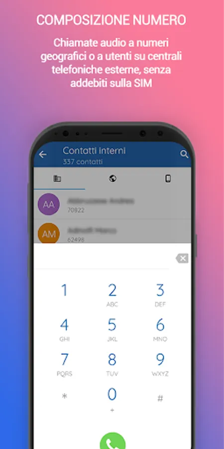 • Visibility of the other company users without having to have them in the smartphone’s address book.