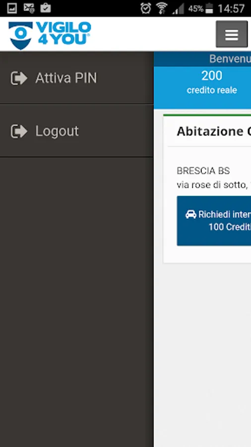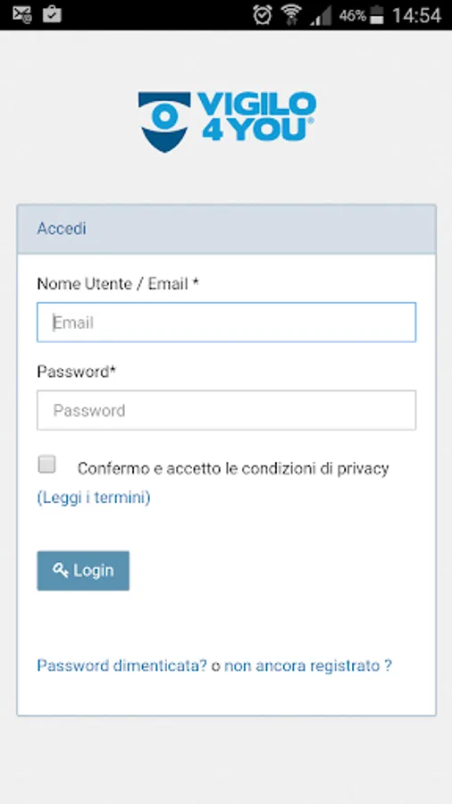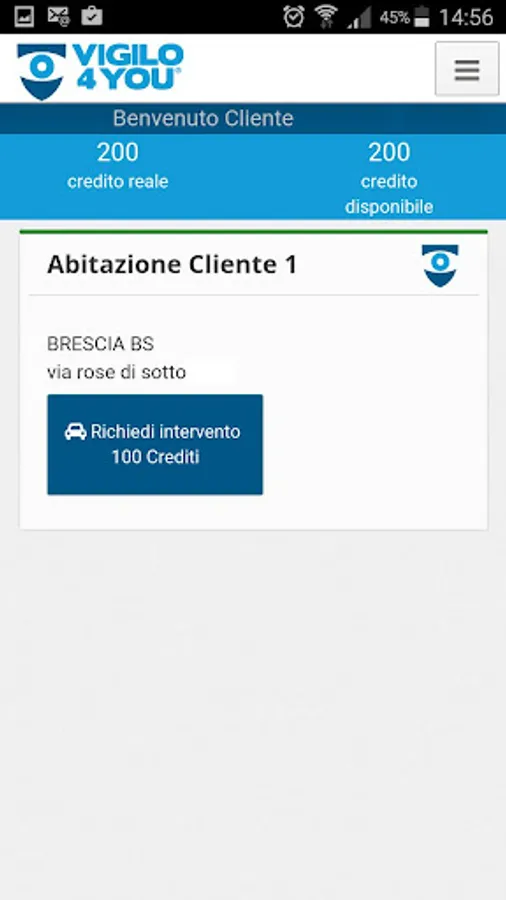 Supervisory Service A CONSUMER, Vigilo4You the App allows you to request the intervention of a security guard in case you are unable to independently manage the alarm coming from your security system. The service provides for the entry to a dedicated portal (reachable from http://vigilo4you.it site) and an accreditation procedure during which must be specified by the intervention extremes, the master data, the data of geo-localization dell ' still, at the end of which the advance payment of the credits necessary to provide the service required. It in fact provides, as a result of the user's request App, the discharge of credits on its own account and the intervention of reclamation at the property registered by a sworn Particular Guard (GPG). Through the portal used at registration you can always monitor the intervention required, outcomes and all information relating to the property and the management. The website can also make refills of your package claims. The loans have an unlimited time validity and can be used on different properties (registration of all sites to be monitored).