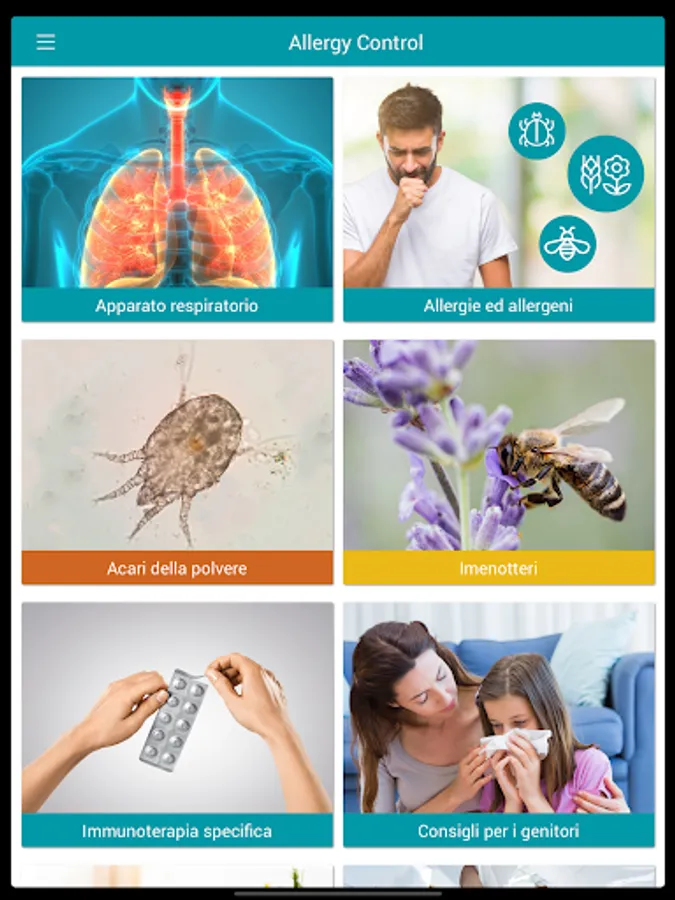 Allergy Control: to learn about respiratory allergies, allergens, pollen calendars, therapies and to better manage Allergen Specific Immunotherapy. The only solution able to resolve "allergies" at the root because it is able to act on the cause, and not only on the symptoms.