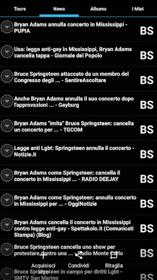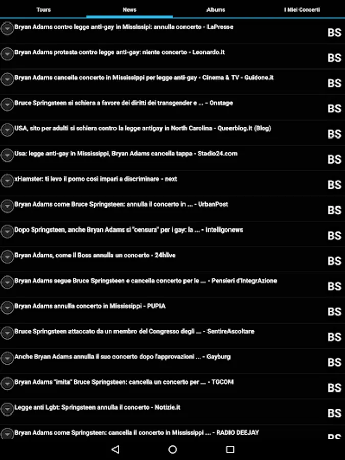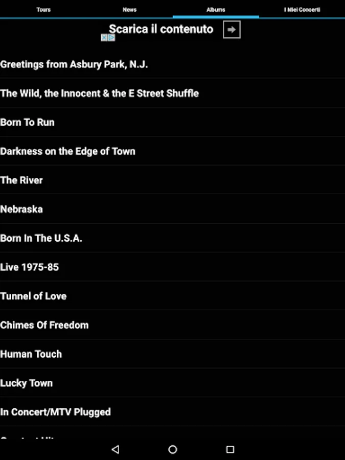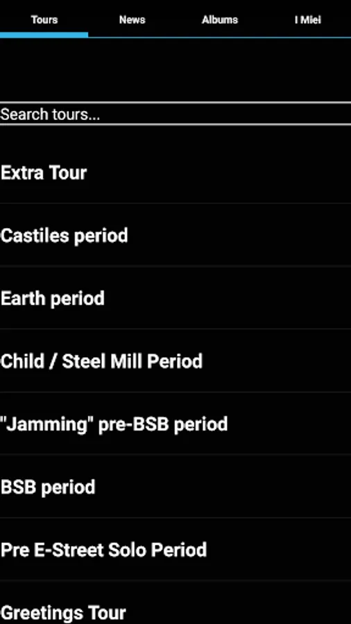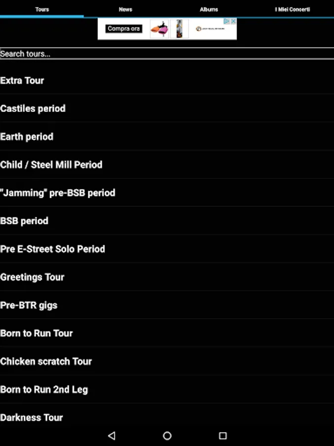 This application keeps track of all Bruce Springsteen 's concerts during his career as singer