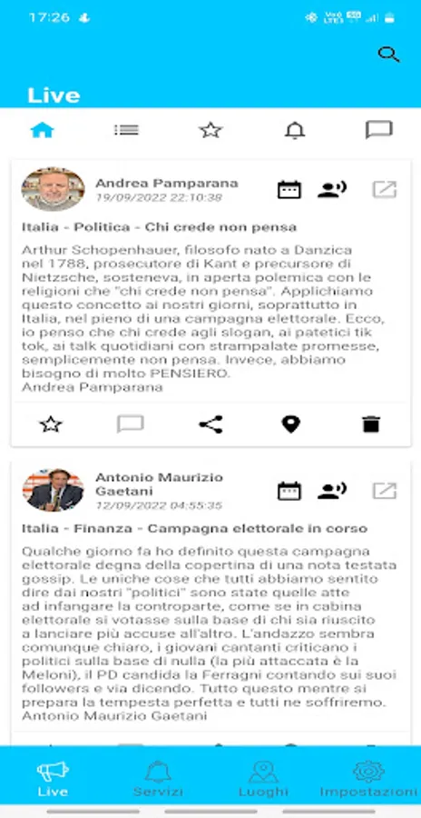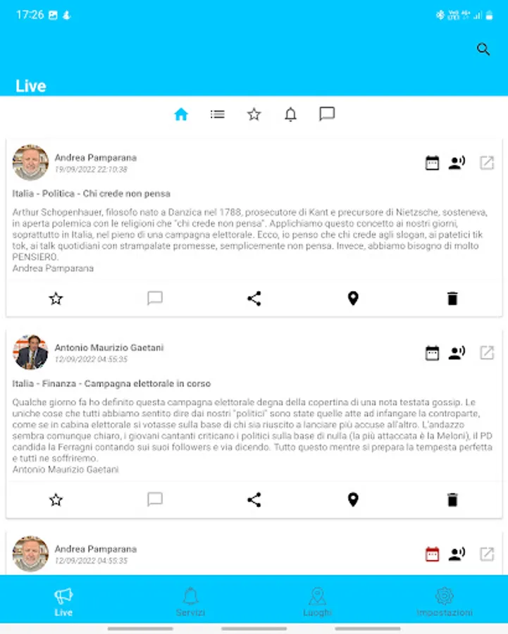 Welcome to CLAMOR the first free daily information platform. Through CLAMOR you will be able to receive articles related to Chronicle, Politics, Society, Justice, Economy, Finance, Art and Culture, Sport, Taxation, Law, Science, Medicine and Technology. The peculiar characteristics of CLAMOR are: The absolute freedom of expression, the authoritativeness of the Signatures, the complete anonymity of the reader, the possibility of having timely information without filters and being able to evaluate all points of view and, finally, being able to buy only that which you consider absolutely interesting, without subscriptions but paying only the single information you choose to read. CLAMOR KNOWLEDGE MAKES THE CONSCIENCE FREE ..... and you can build the newspaper you want.