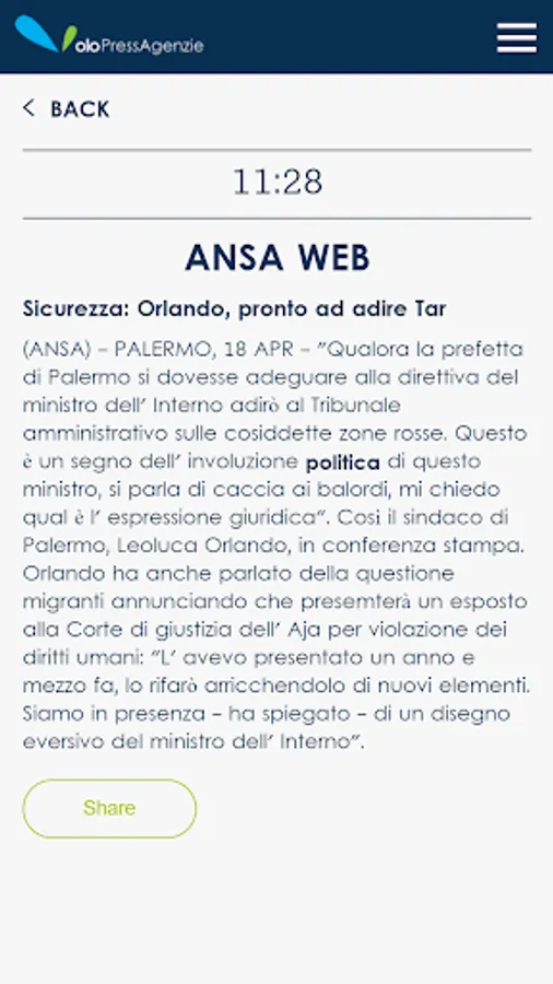 VoloPress Agencies is the app developed by Volocom for real-time monitoring of both web and paid news agencies. The service is based on innovative technologies that allow the acquisition, indexing and consultation of agency launches. In addition to the acquisition of news agencies, the service allows to integrate the Twitter flow of the main accounts of the Italian political, economic and social world.