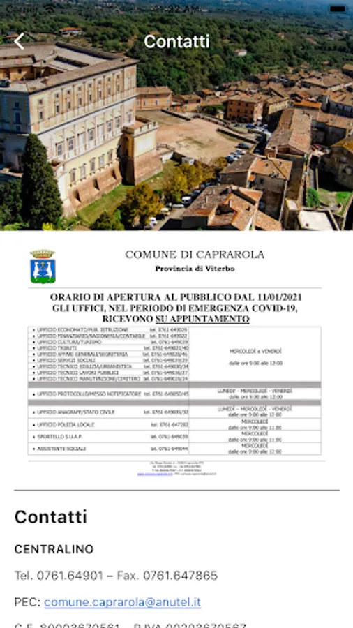 The VisitCaprarola app offers the user all the information to better enjoy the city of Caprarola: information on upcoming events and notices of the municipality.