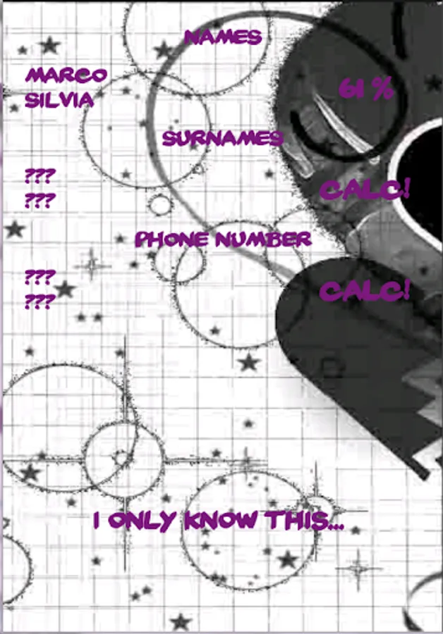 A love test currently based on name, surname and phone number (next on zodiac and something else...).