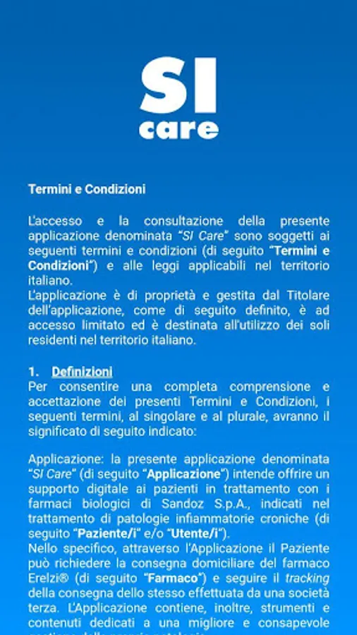 The SiCare app allows you to monitor the order placed through the Sandoz Immunology Care service and to access dedicated sections with different services.