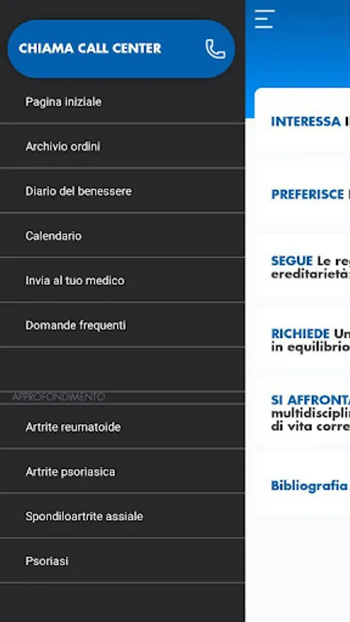 It is possible to consult the pathology sheets, fill in the wellness diary, insert the reminders of drug administration and specialist visits in a calendar synchronized with that of the smartphone, send the diary to your doctor by email.