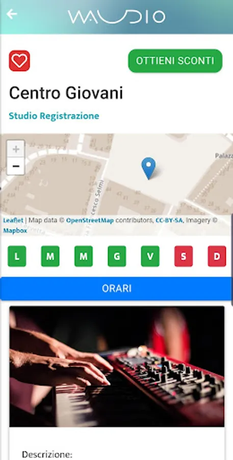 In the card of each rehearsal room or recording studio you will always find the days and times of opening and closing, a map that will show you the exact location and you will have the possibility to save the card among your favorites to book even faster and easy!