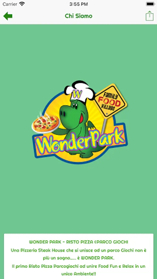 WONDER PARK - RISTO PIZZA & PLAYGROUND A Steak House Pizzeria that joins a Playground is no longer a dream ..... it's WONDER PARK. The first Risto Pizza Parcogiochi to combine Food Fun and Relax in a single Environment !! Not just a Playground and not just a Pizzeria .... but a real FAMILY FOOD VILLAGE for fun and the right Events for your family !!!! Your children play and you relax a stone's throw from them, thanks to the Nosto Exclusive Open Space concept ... Children always in sight from your table !!! From this year SUMMER PARK opens the new outdoor area in which to live WONDER PARK also in summer, both with the RISTORO Area, which games connected in sight a few steps from the tables, for a Relax evening with your children always at your doorstep from you in maximum safety !!!!