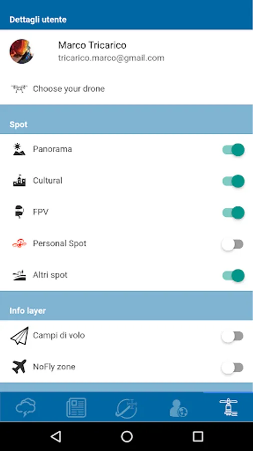 D-Spot is the app that allows you to share with other people the places where you have flown with your Drone.