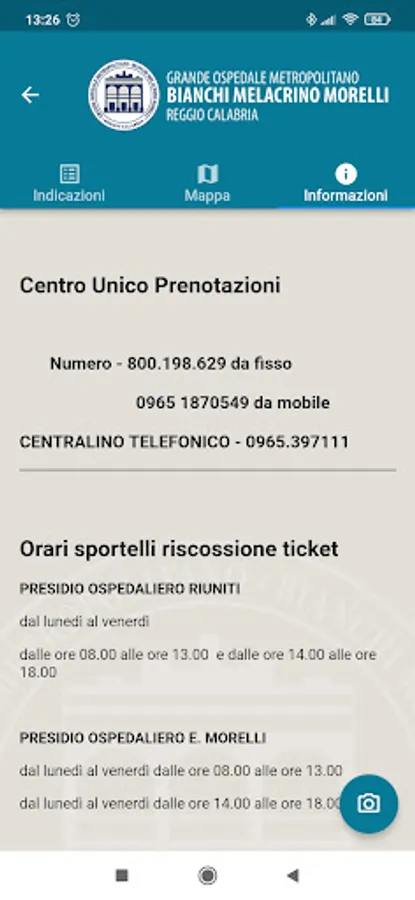 The Great Metropolitan Hospital "Bianchi Melacrino Morelli" of Reggio Calabria extends the range of its technological services also in the Mobile App sector.