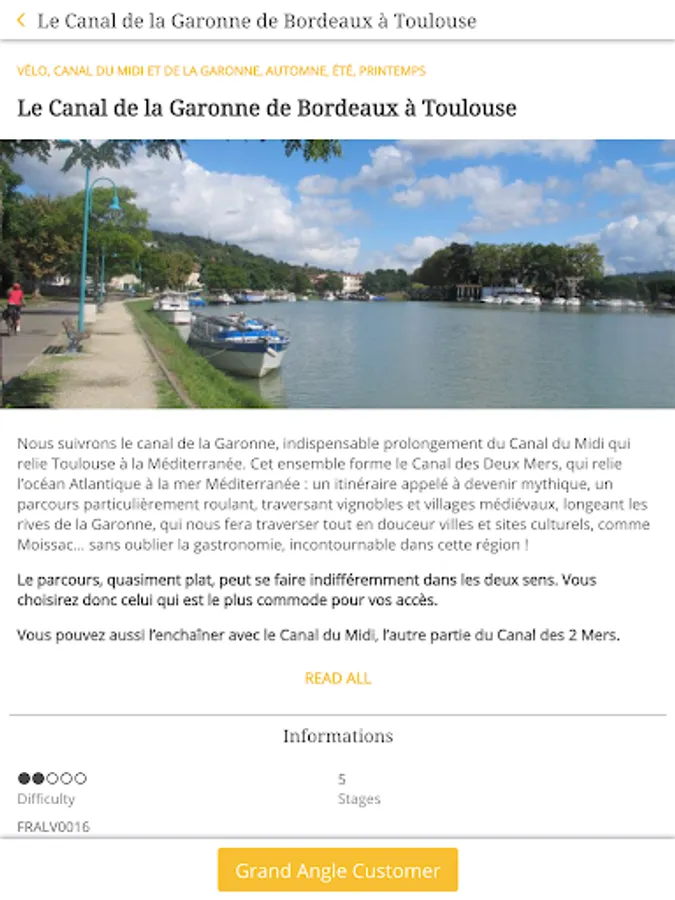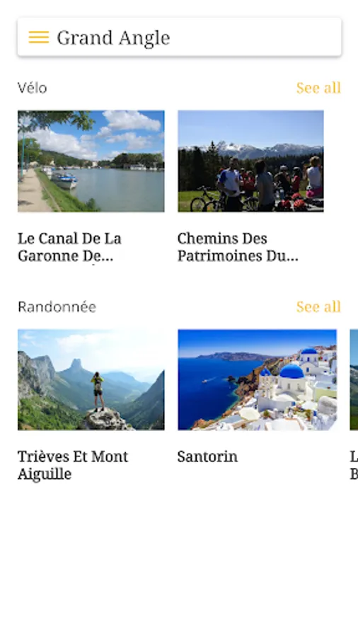 From the application, Grand Angle provides you with the day-to-day journeys of your trip. Every day a new description, a new GPS track. The use is simple and intuitive.