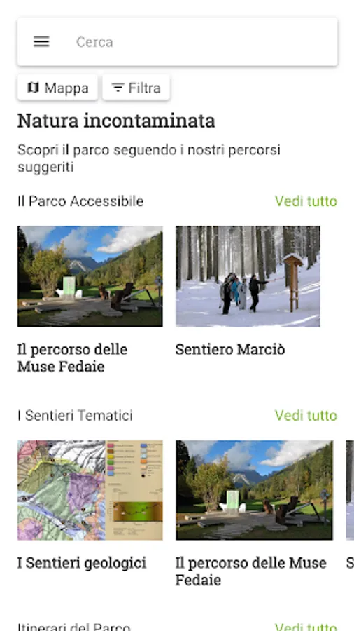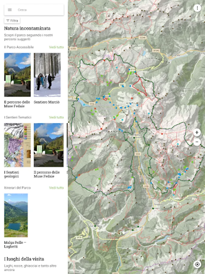 Experience the Paneveggio Pale di San Martino Natural Park and explore all its wonders: the waters, rocks, forests and stories of the Park. You can find all this and much more by exploring the app and its interactive map.