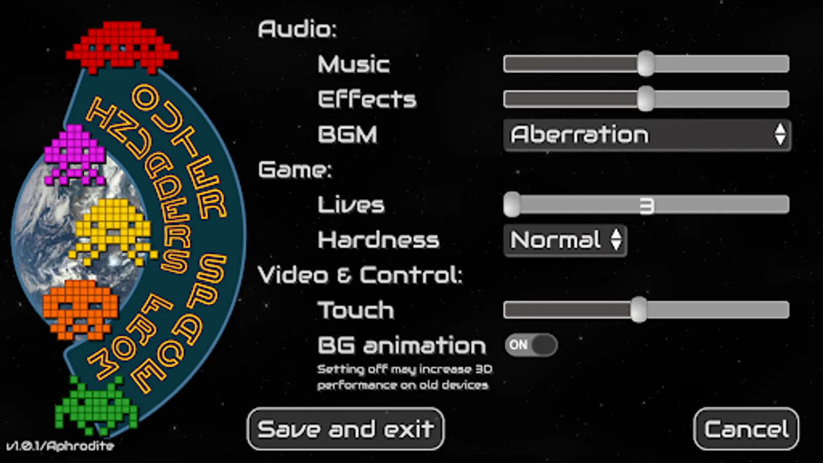 • Survival: A mode in which to play a single level with a limited number of ships in increasing difficulty.