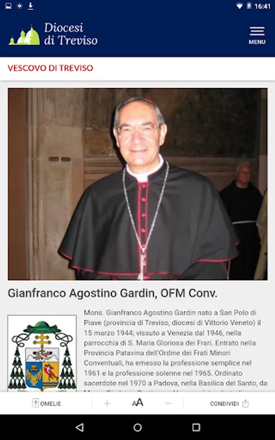 The app "Diocese of Treviso" port on the mobile content on the diocesan website, allowing the diocese to communicate with persons near and far.