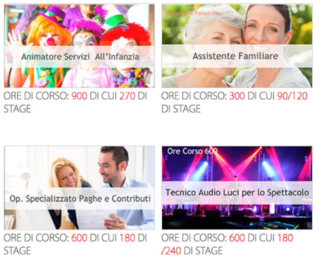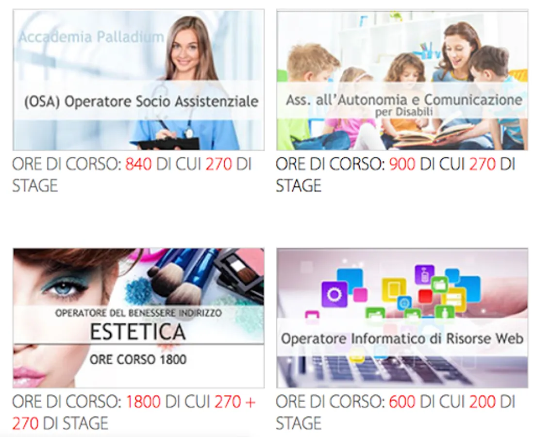 The Palladium Academy is proposed as a modern, innovative, young, versatile school, it has been carrying out professional training courses since 1995 using public and private funding for the realization of training projects. Training is seen not only as a response to the problem of unemployment, but also as a personal enrichment of the individual, who is directed towards the demands of the world of work with new teaching methods.