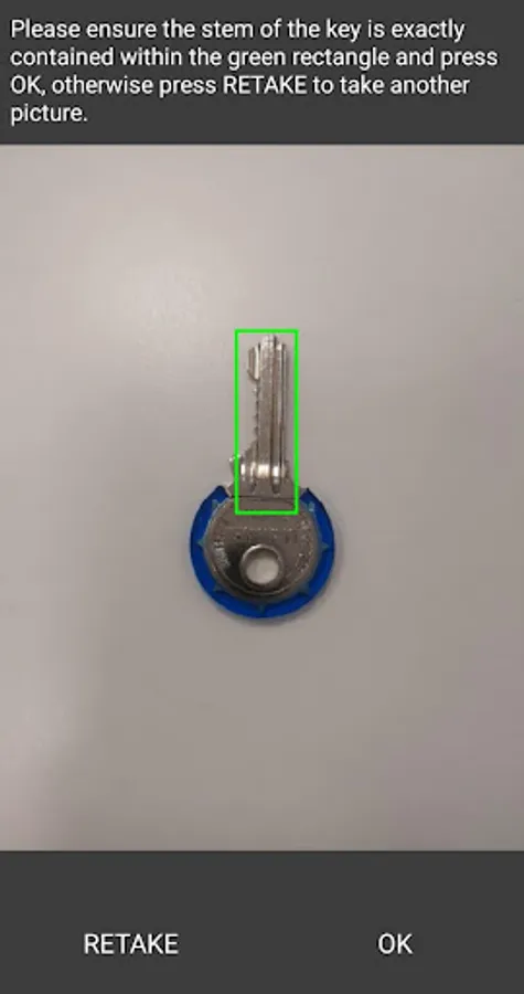 To memorize a key 3 photos need to be taken of each side. After this procedure some seconds are needed before the app can recognize a key for the first time. A notification advises when the recognition process is finished.