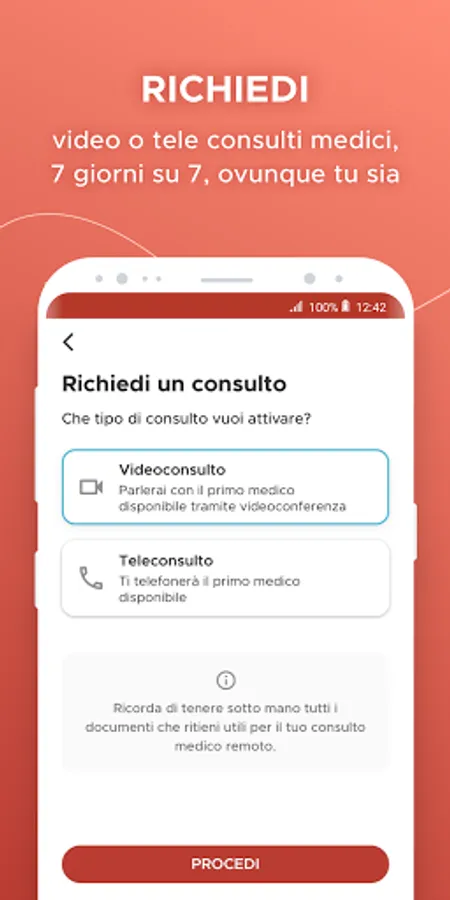- Teleconsultation: Speak immediately with a doctor in Teleconsultation and Videoconsultation mode to get a quick answer to your doubts.