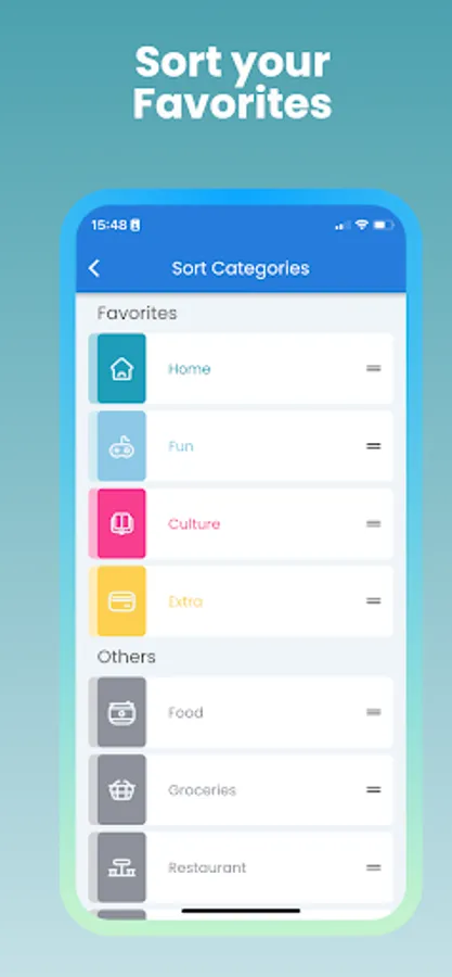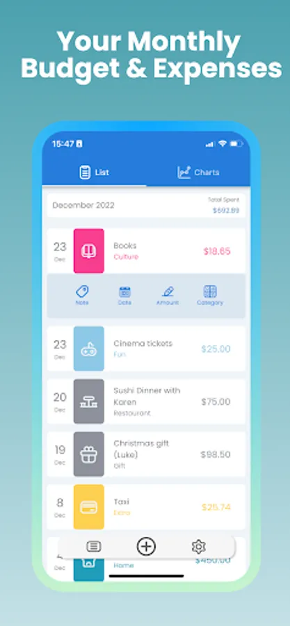 Easily define your monthly budget and start tracking your spending by sorting all your payments in +15 categories.