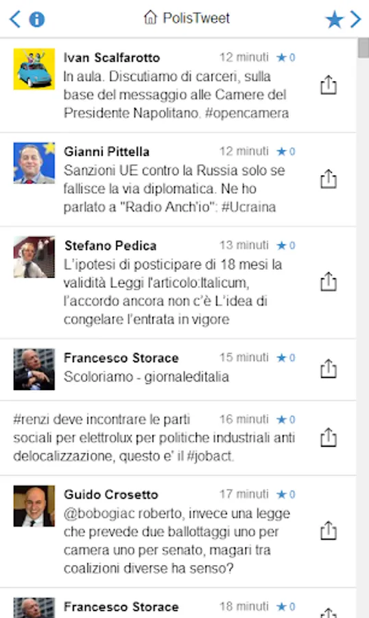 PolisTweet, the recent tweets of the most prominent Italian politicians