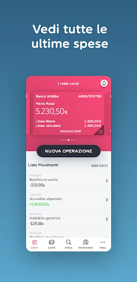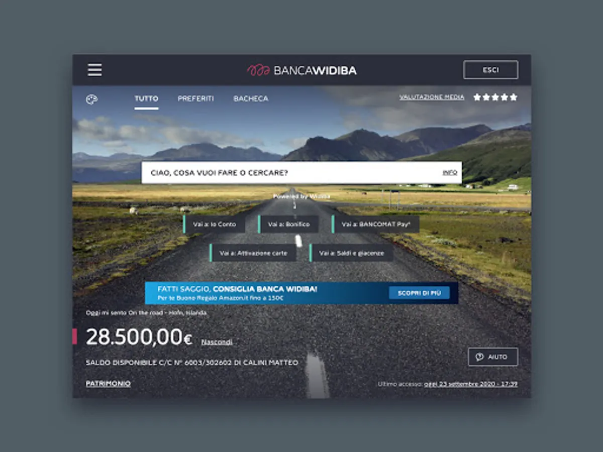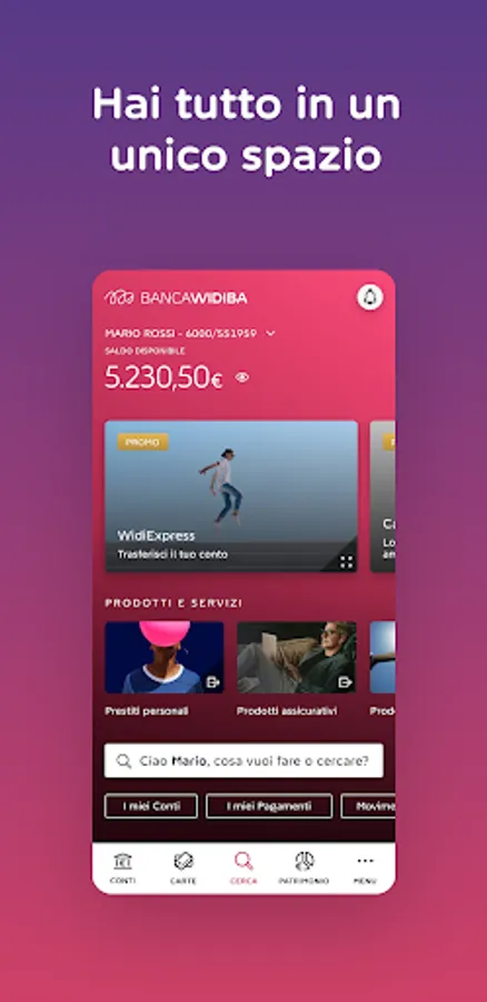 A custom experience, a simple communication with your every day language, a tool useful and always available. A new app easy and customizable. Install the new Banca Widiba app now, it's free.