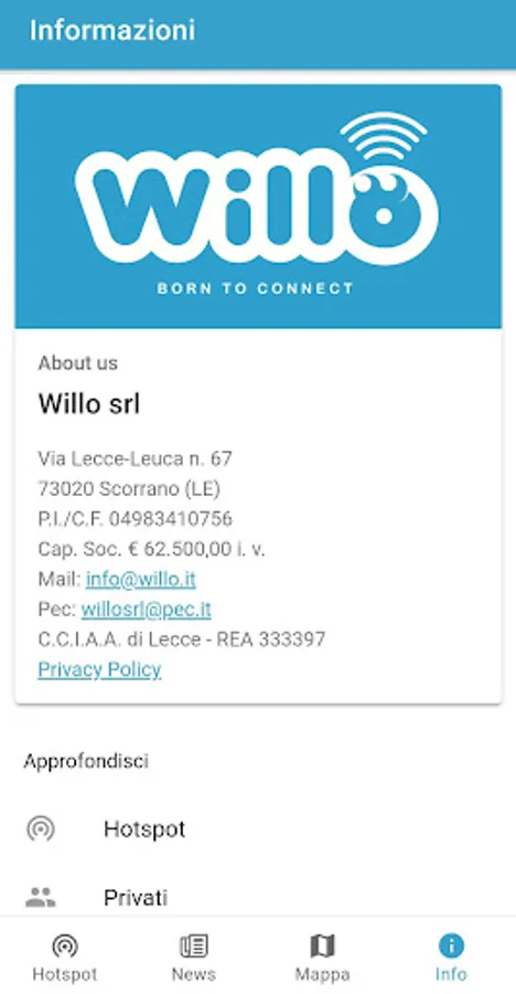 Thanks to this application you can easily connect to the Willo network hotspots, consult the map and stay in touch with us.