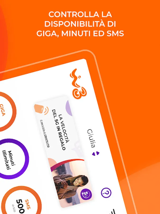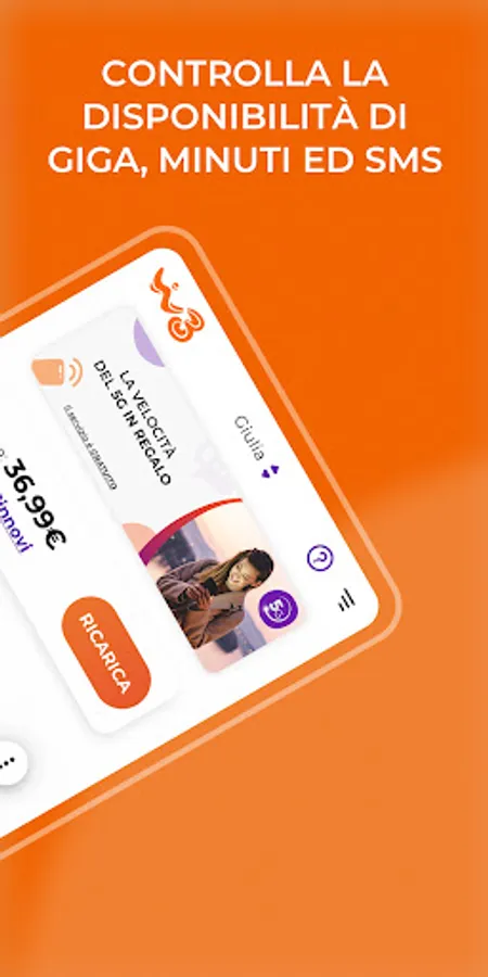 Access WINDTRE at any time, under mobile coverage or in Wi-Fi, to check the amount of GB left, minutes and SMS available and add what you need with a simple tap.