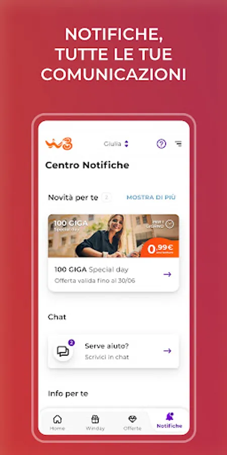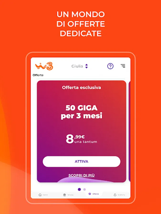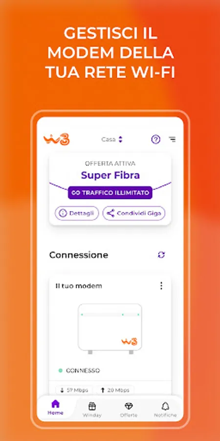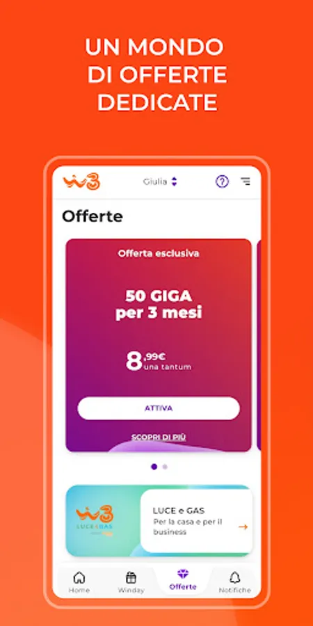 The WINDTRE app is the easiest and fastest way to check and customize the offers of your WINDTRE landline and mobile phone lines.