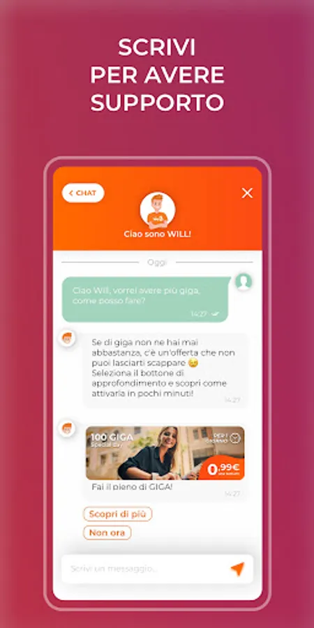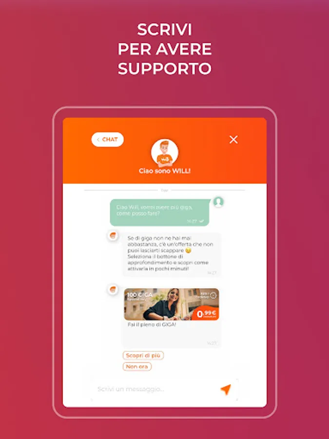 • Contact us in CHAT! All the support you need thanks to the digital assistant WILL and our team of consultants