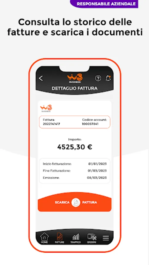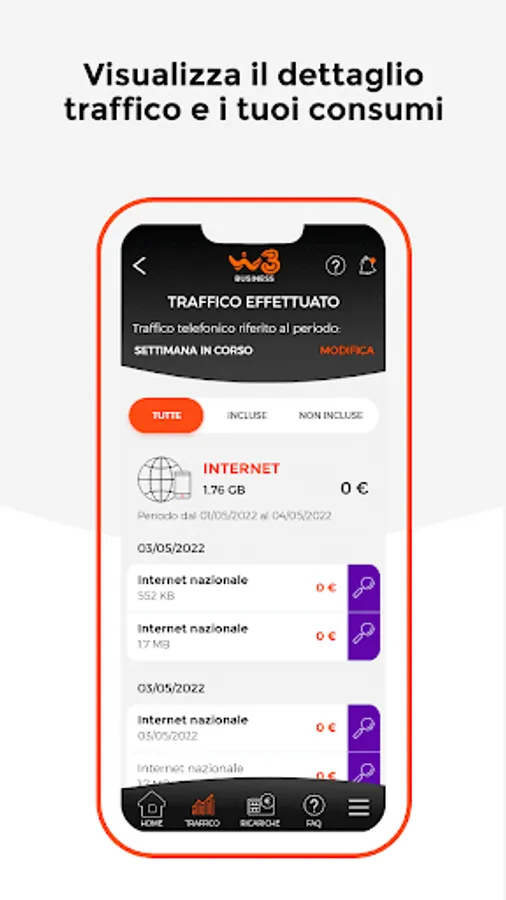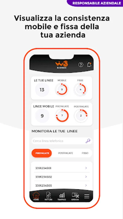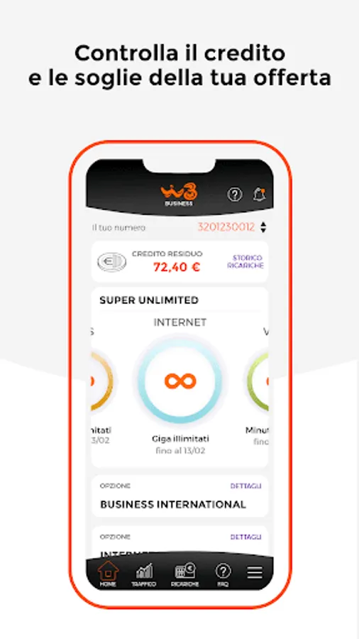 WINDTRE BUSINESS is the free self-care application, completely renewed and reserved for customers with WINDTRE BUSINESS and DIRECT offers, which allows you to view the entire consistency of your company with the history of invoices issued, monitor consumption, check traffic and remain contact us without consuming the gigabytes provided for by the tariff plan.