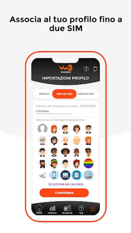 To use the services of the app with users as Manager, register via the Selfcare portal, reachable via the link https://selfcare.windtrebusiness.it/ for all customers with WINDTRE BUSINESS offers or at the link https://selfcare. direct.windtrebusiness.it for all customers with DIRECT offers.