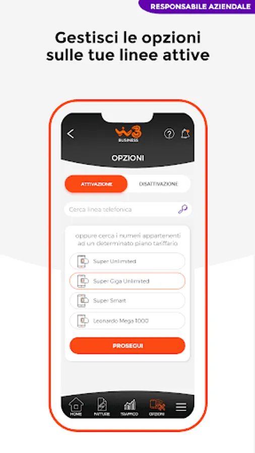 • receive notifications in the event of overdue invoices, specific promotions, national and international data thresholds, activation of fixed lines