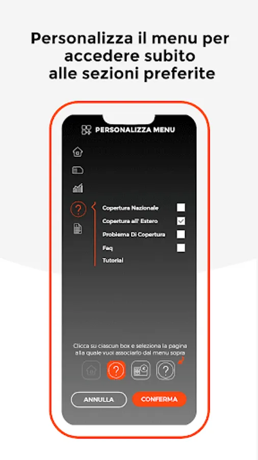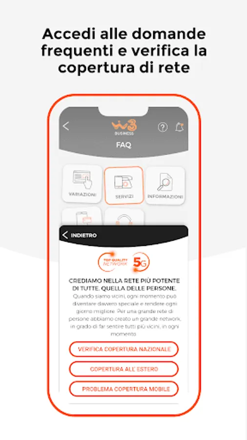 • check the coverage of the network in Italy and the list of operators and services available abroad