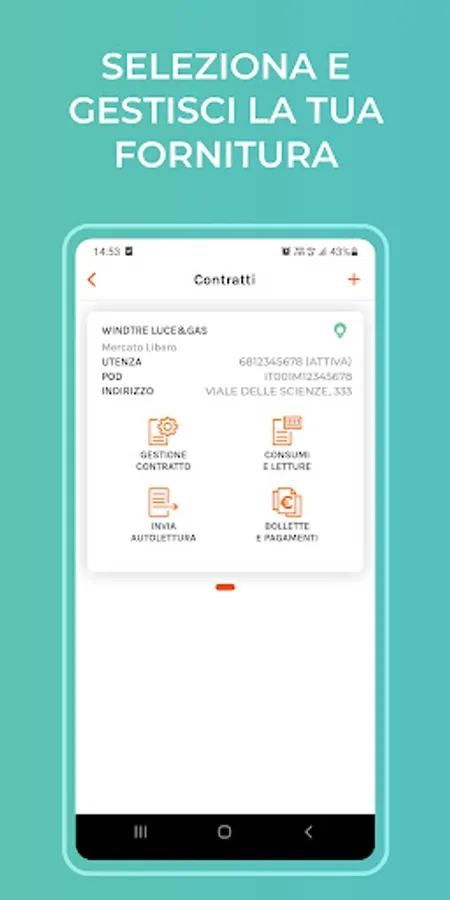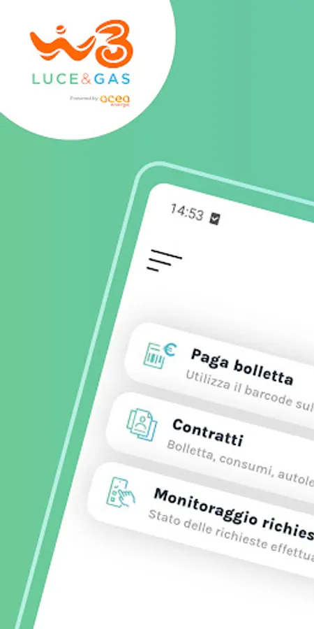 The WINDTRE LUCE & GAS Powered by Acea Energia App is the easiest and fastest way to manage your electricity and gas supplies.