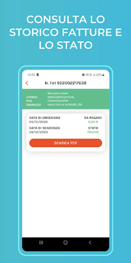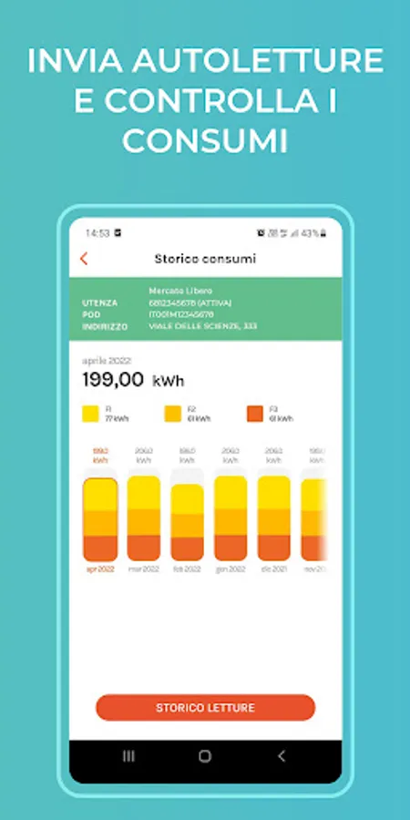 For correct use of the App it is important to enter the unique code of the active supply (POD for light and PDR for gas) after registration.