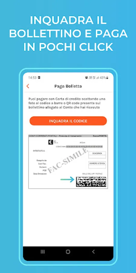 - Pay your bill or others, with a photo of the barcode or QR code present in the bulletin, by credit card