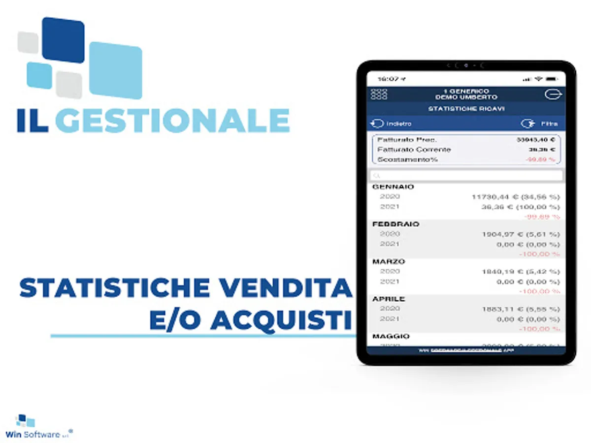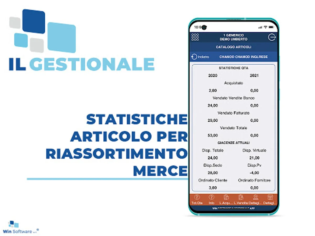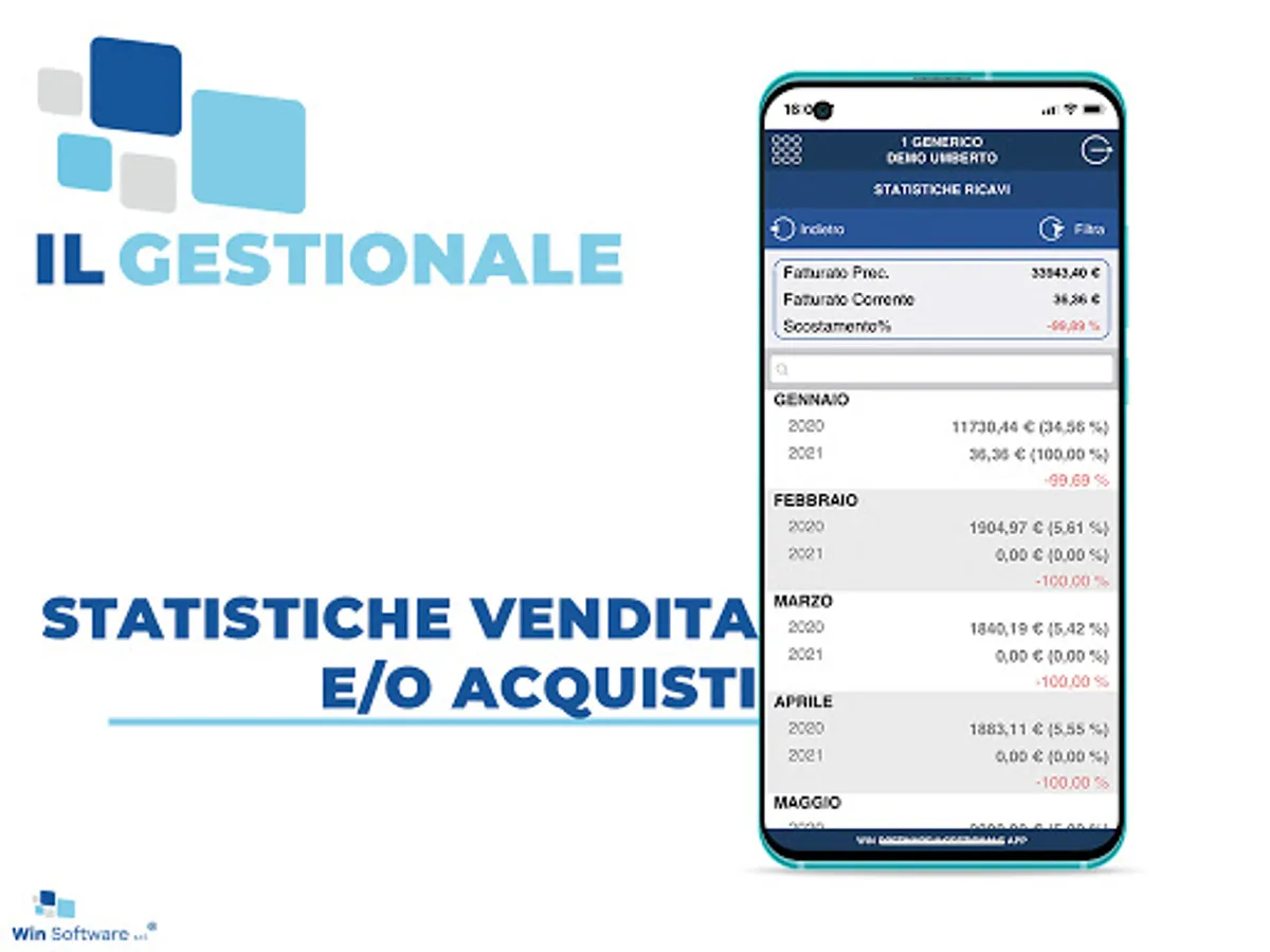 The “Il Gestionale” app allows you to have your company at your fingertips. It is aimed at customers who use "Il Gestionale" Win Software, giving the possibility to draw on information in any place and in real-time.