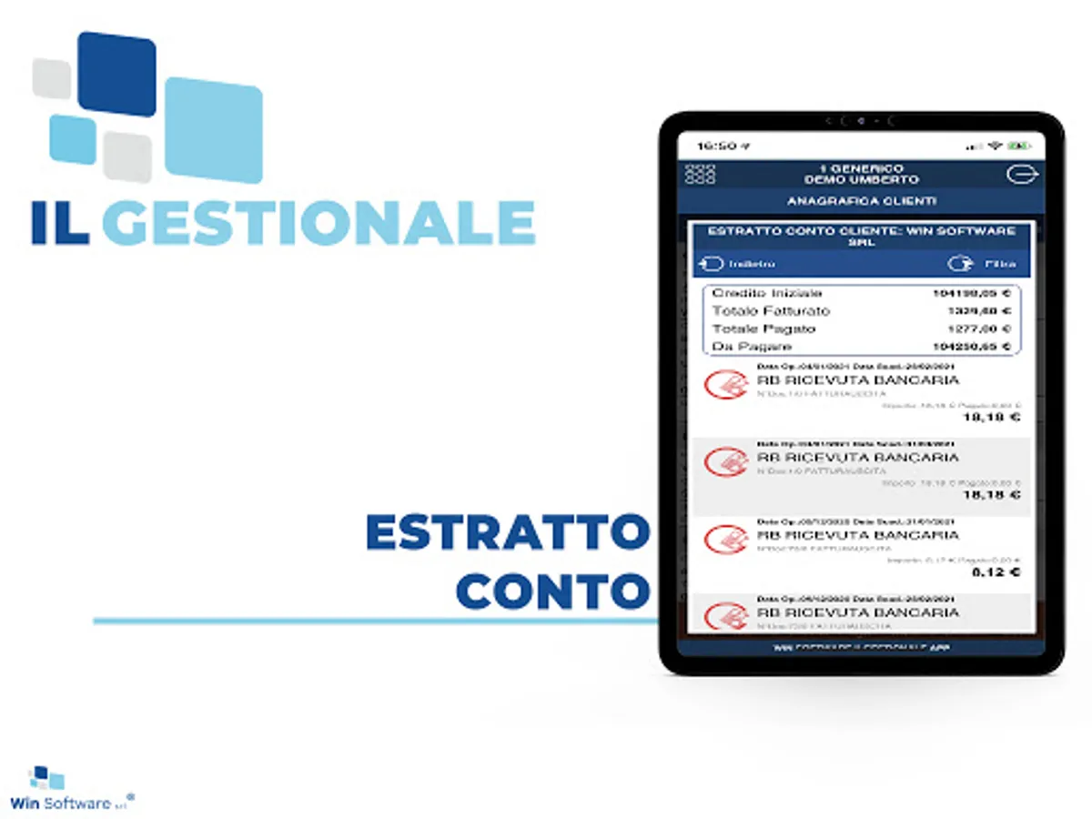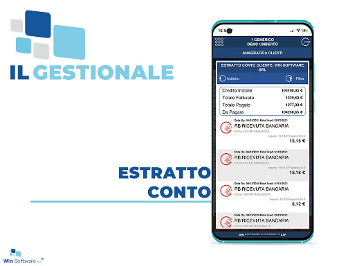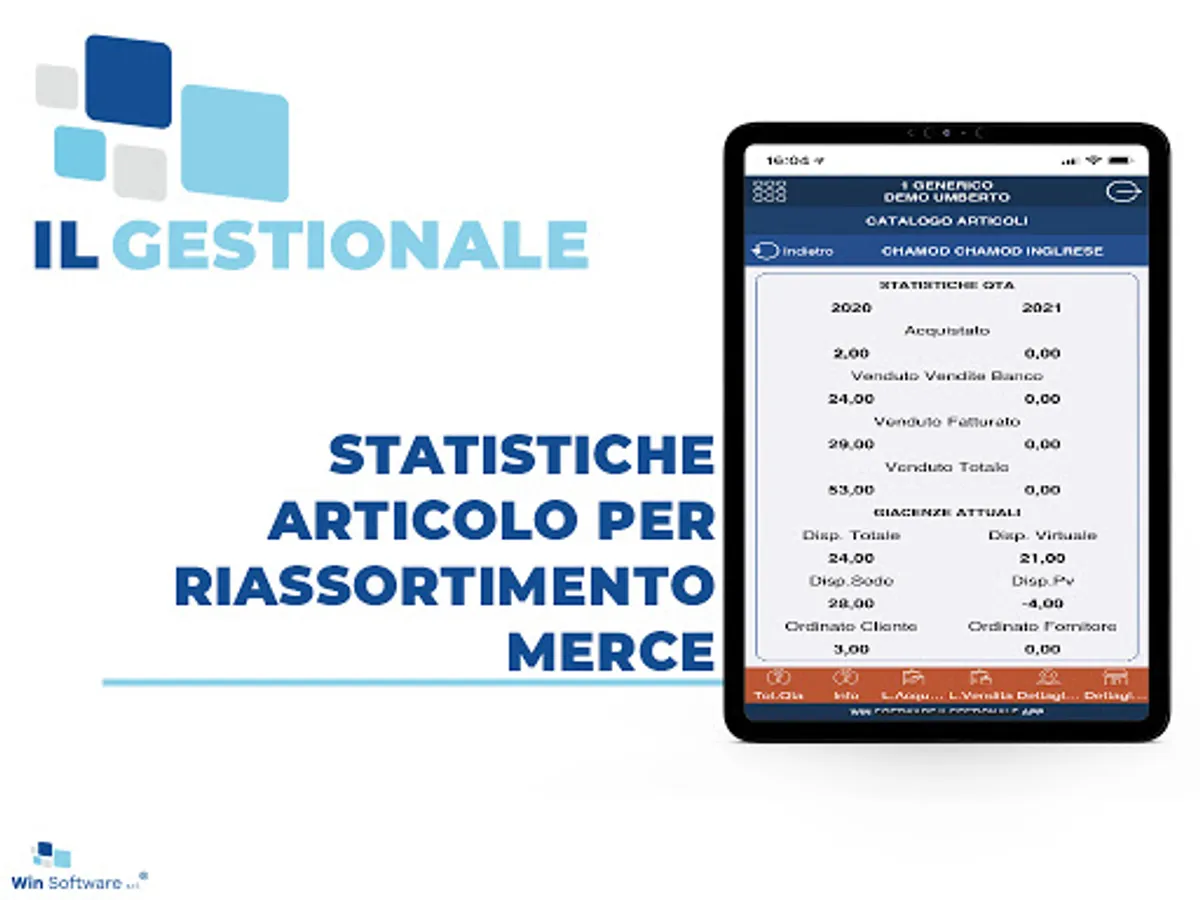 The “Il Gestionale” app allows you to have your company at your fingertips. It is aimed at customers who use "Il Gestionale" Win Software, giving the possibility to draw on information in any place and in real-time.