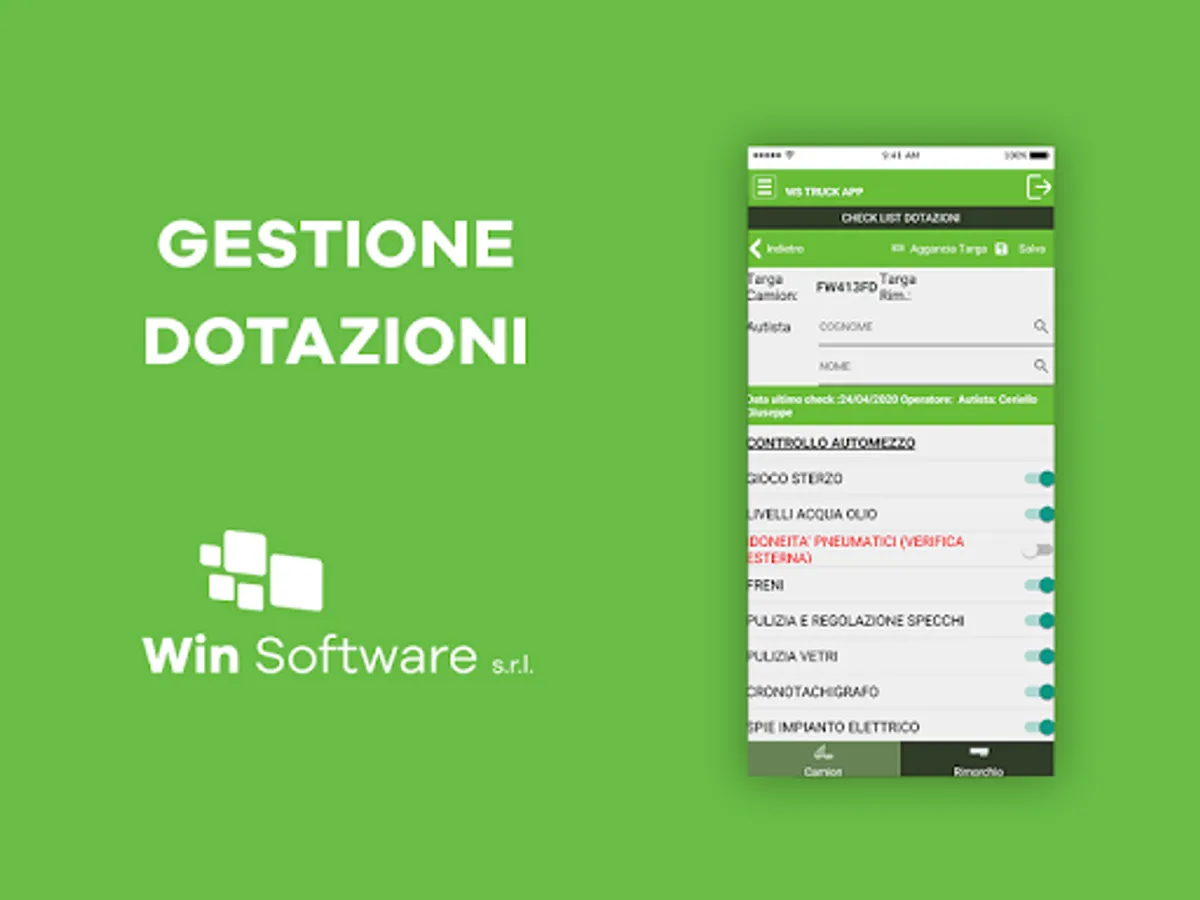 The WsTruck app is the app integrated with the WsTruck Win Software management software